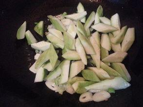4. 加入角瓜:将切好的角瓜条放入锅中,继续翻炒。